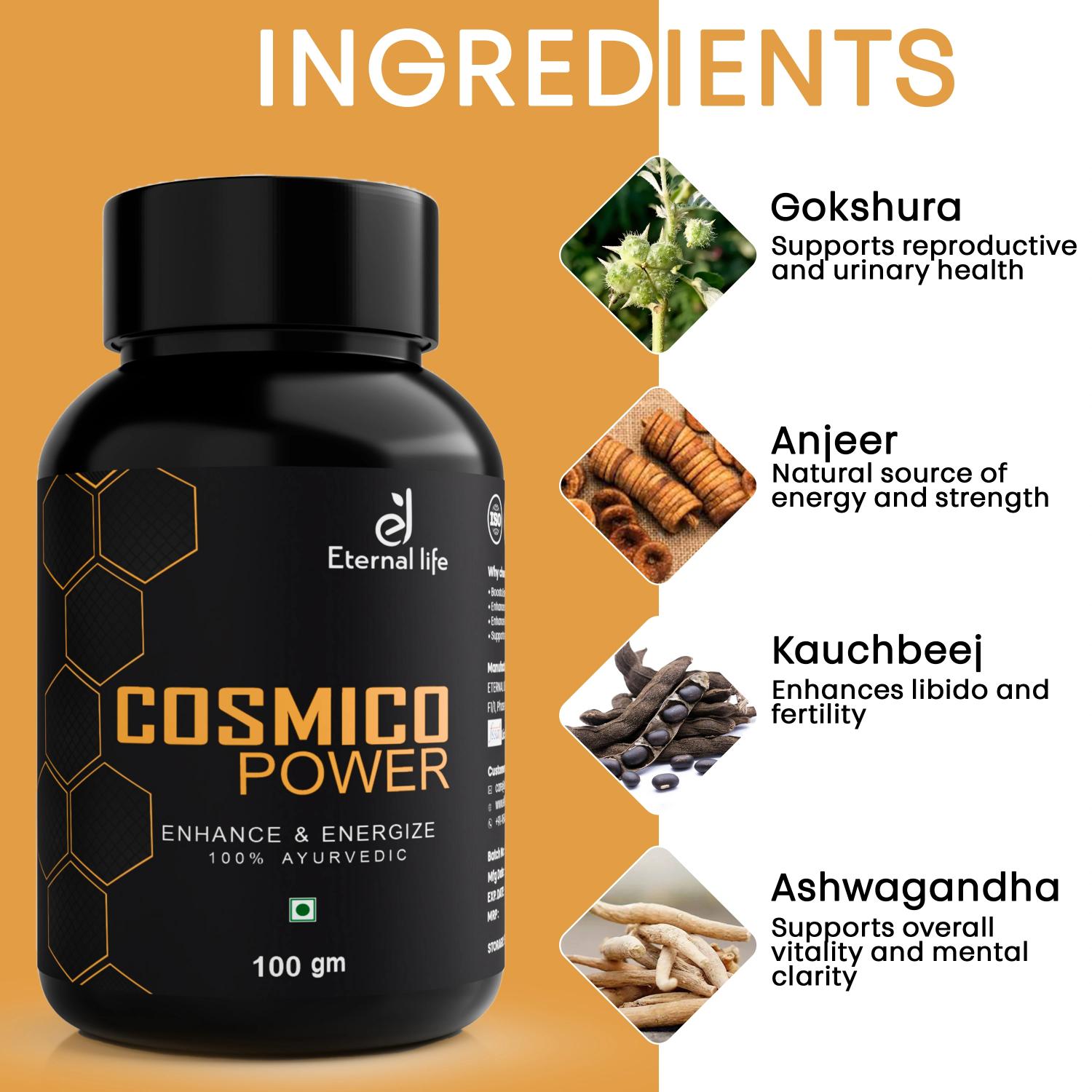 इटरनल लाइफ कॉस्मिको पावर के साथ सहनशक्ति, मांसपेशियों की वृद्धि और रिकवरी को बढ़ावा दें। मल्टी-विटामिन और प्रतिरक्षा समर्थन के साथ पुरुषों के लिए ऑर्गेनिक टेस्टोस्टेरोन बूस्टर। 60 गोलियाँ।